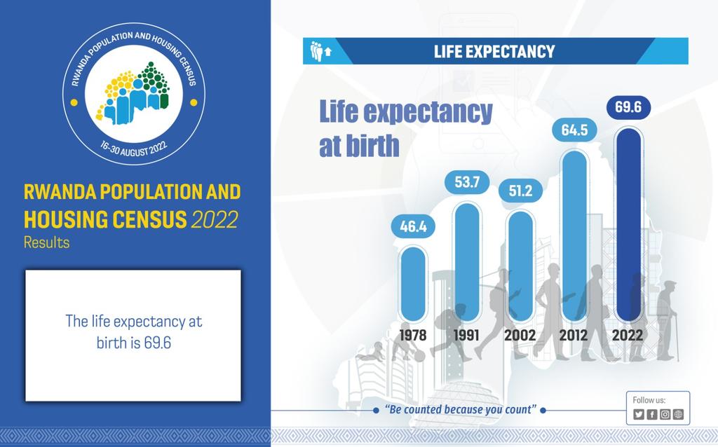 Icyizere cyo kuramba kw’Abanyarwanda cyariyongereye kuko iri barura ryagaragaje ko kigeze ku myaka 69,6 kivuye kuri 64,5 cyariho mu mwaka wa 2012 mu ibarura ryari riherutse gukorwa.