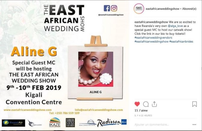 Abategura ibi birori banditse kuri instagram bavuga ko ‘bishimiye gutangaza ko Aline Gahongayire ariwe uzayobora ibi birori bizerekanirwamo ibikenerwa n’abageni’