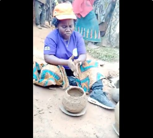 Mu mashusho yashyizwe ahagaragara ku rubuga rwa Twitter, kuri uyu wa mbere, agaragaza Minisitiri Sabushimike, yicaye abumba inkono nk’usanzwe amenyereye ako kazi, abenegihugu bashungereye bareba uko umutegetsi azobereye akazi kabo mu buryo batari bazi.