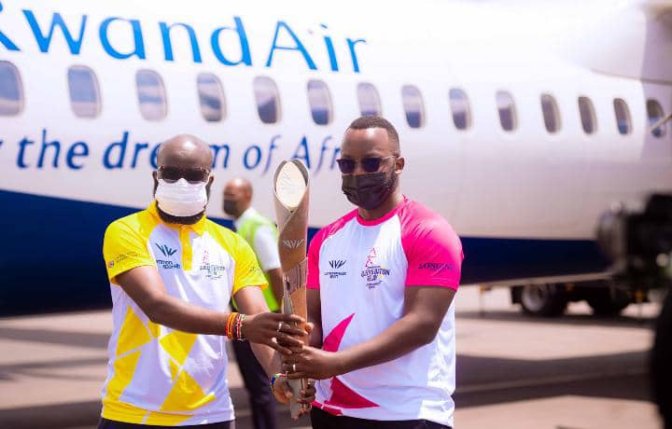 Ku gicamusi nibwo iyi nkoni yageze ku Kibuga mpuzamahanga cy’indege cya Kigali ahagana saa 12h26’ z’amanywa, ivuye mu gihugu cya Uganda ikaba igeze mu Rwanda ku nshuro ya Gatatu kuva muri 2014 na 2017 none igarutse muri 2021.