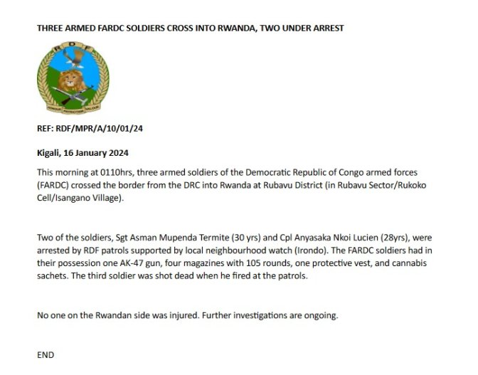 Byageze kuri uyu wa Gatatu igisirikare cya Congo kivuze kuri abo basirikare bacyo, cyemera ko ari abacyo ariko kivuga ko bisanze ku butaka bw’u Rwanda gusa ngo cyababajwe nuko umwe muri bo yishwe.