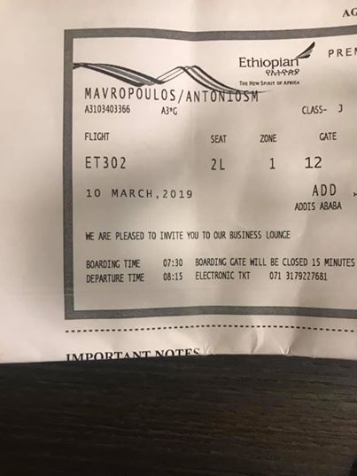 Umugabo ukomoka mu Bugereki avuga ko yasizwe n’indege ya kompanyi Ethiopian Airlines yo muri Ethiopia yakoze impanuka ku cyumweru kubera ko yageze ku muryango wo kwinjiriramo ugana aho indege iri acyerereweho iminota ibiri.