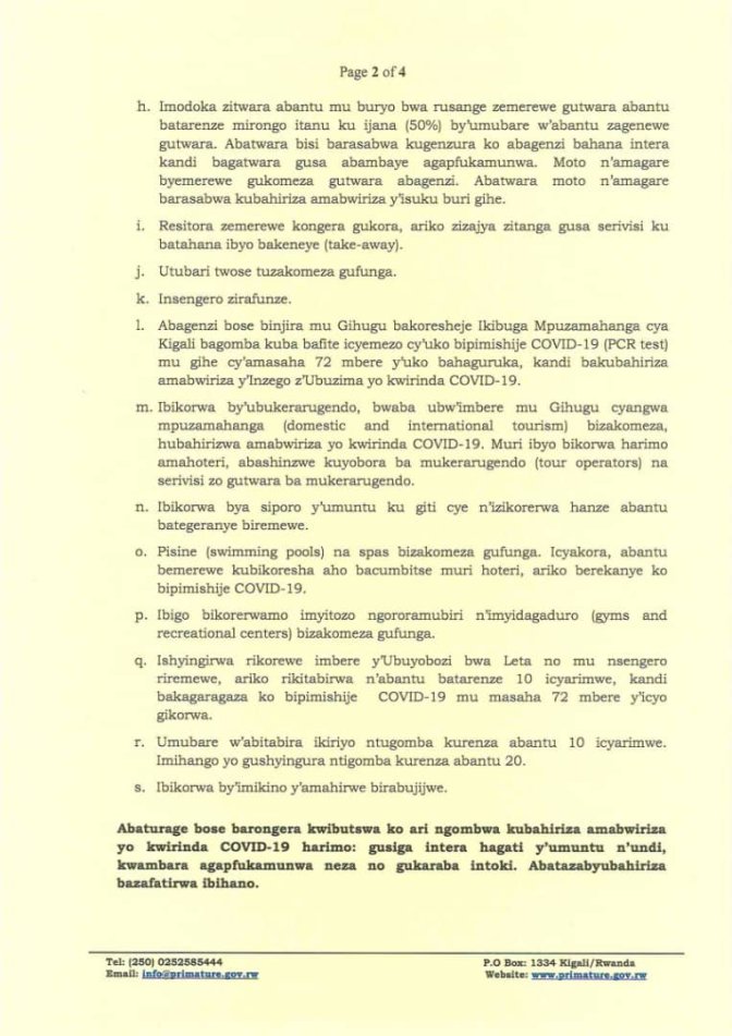 Mu myanzuro yayifatiwemo hemejwe ko gahunda ya Guma mu rugo ivanyweho mu Mujyi wa Kigali no mu Turere twa Burera, Gicumbi, Kamonyi, Musanze, Nyagatare, Rubavu, Rwamagana na Rutsiro.