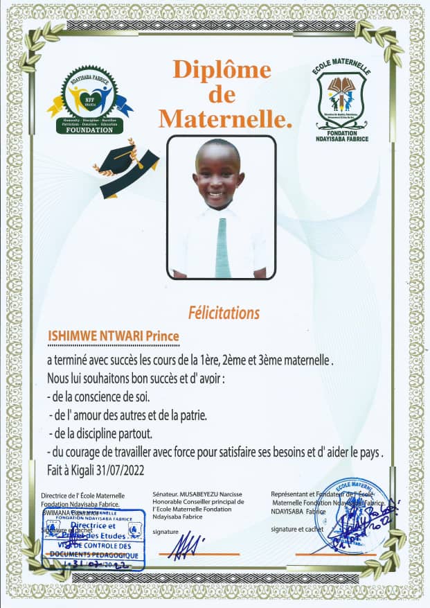 Ni umuhango uzwi nka Graduation y’abana b’ imfura za mbere z’abana bane iri shuri Ecole Maternelle Foundation Ndayisaba Fabrice risohoye kuva ryashingwa muri 2020.