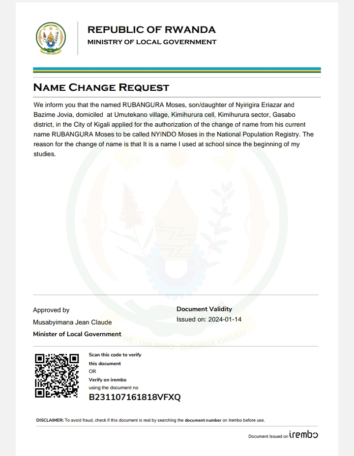 Itangazo ryo guhinduza amazina