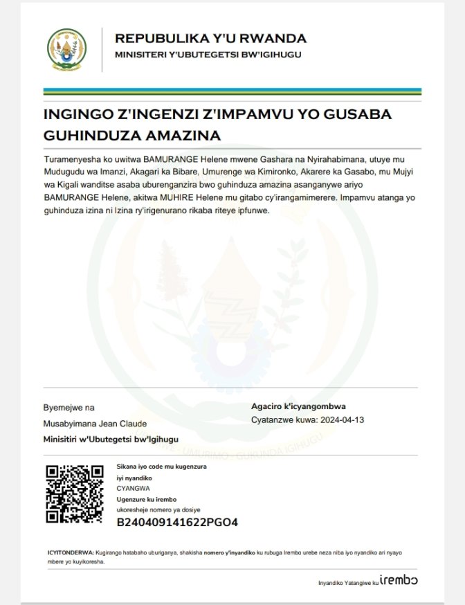 Itangazo ryo guhinduza amazina