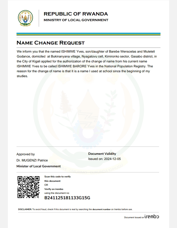 Itangazo ryo guhinduza amazina