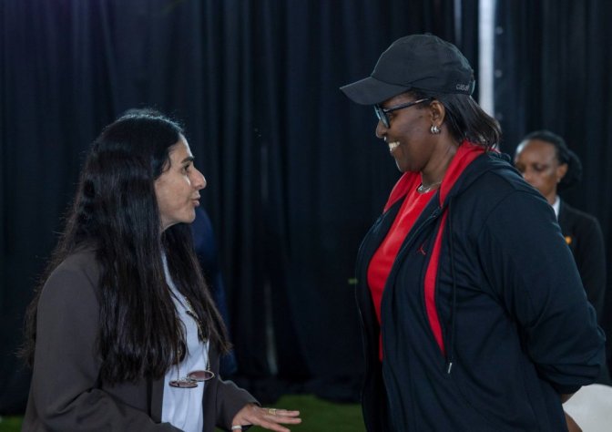 Madamu Jeanette Kagame n’umugore wa Perezida wa FIFA, Leena Infantino, basuye ishuri ryigisha abana umupira w’amaguru ryashinzwe na Jimmy Mulisa ryitwa "Umuri Foundation".