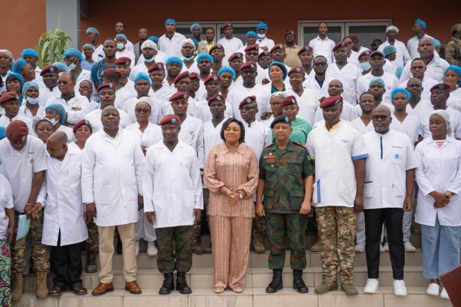 Ubwo yari agiye gusura ingabo zakomerekeye ku rugamba, Madamu Denise Nyakeru, akaba Umugore wa Perezida Tshisekedi, yagaragaye asura n’umusirikare ufite ibirango ku muboko by’umutwe w’abarwanyi kabuhariwe ba FDLR uzwi nka CRAP.