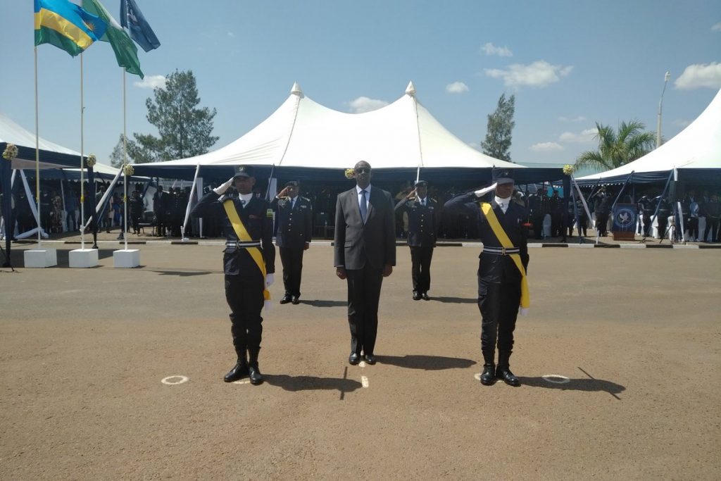 Minisitiri Busingye wambitse aba bapolisi bashya ipeti rya “Assistant Inspector of Police” akanakira indahiro zabo, arashimira polisi y’u Rwanda yateguye umuhango wo gusoza aya mahugurwa ndetse nabo ubwabo kuba bayamazemo umwaka bakanayasoza neza.