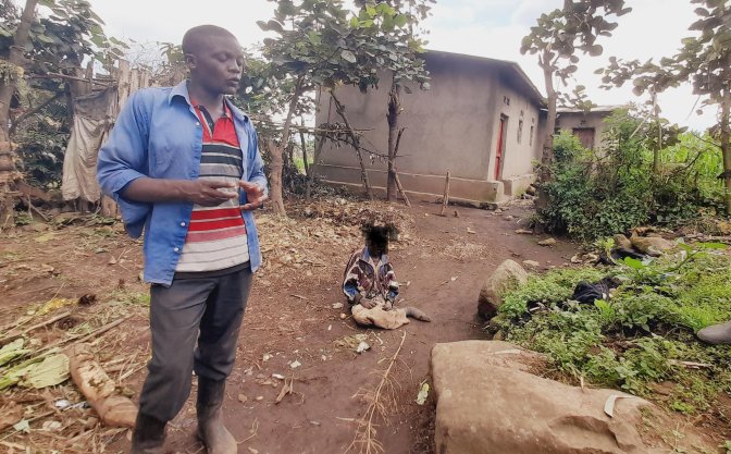 Ikindi kibabaje kuri uyu mwana ntabwo avuga gusa iyo umuhamagaye mu izina rye rumva akaza akuruza ikibuno, agendera hasi kuko adashobora guhaguruka; haba kwituma, kwihagarika byose abikorera aho yicaye.