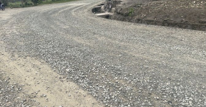 Ibi babishingira kukuba uyu muhanda warajemo ibinogo, none kuri ubu bakaba bawushyize hasi bagiye kuwubaka bundi bushya.