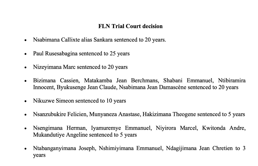 Urugereko Rwihariye rw’Urukiko Rukuru ruburanisha imanza mpuzamahanga n’izambukiranya imbibi rwakatiye Rusesabagina Paul igihano cyo gufungwa imyaka 25 nyuma yo guhamwa n’ibyaha bifitanye isano n’ibikorwa by’iterabwoba byagabwe ku butaka bw’u Rwanda mu bihe bitandukanye.