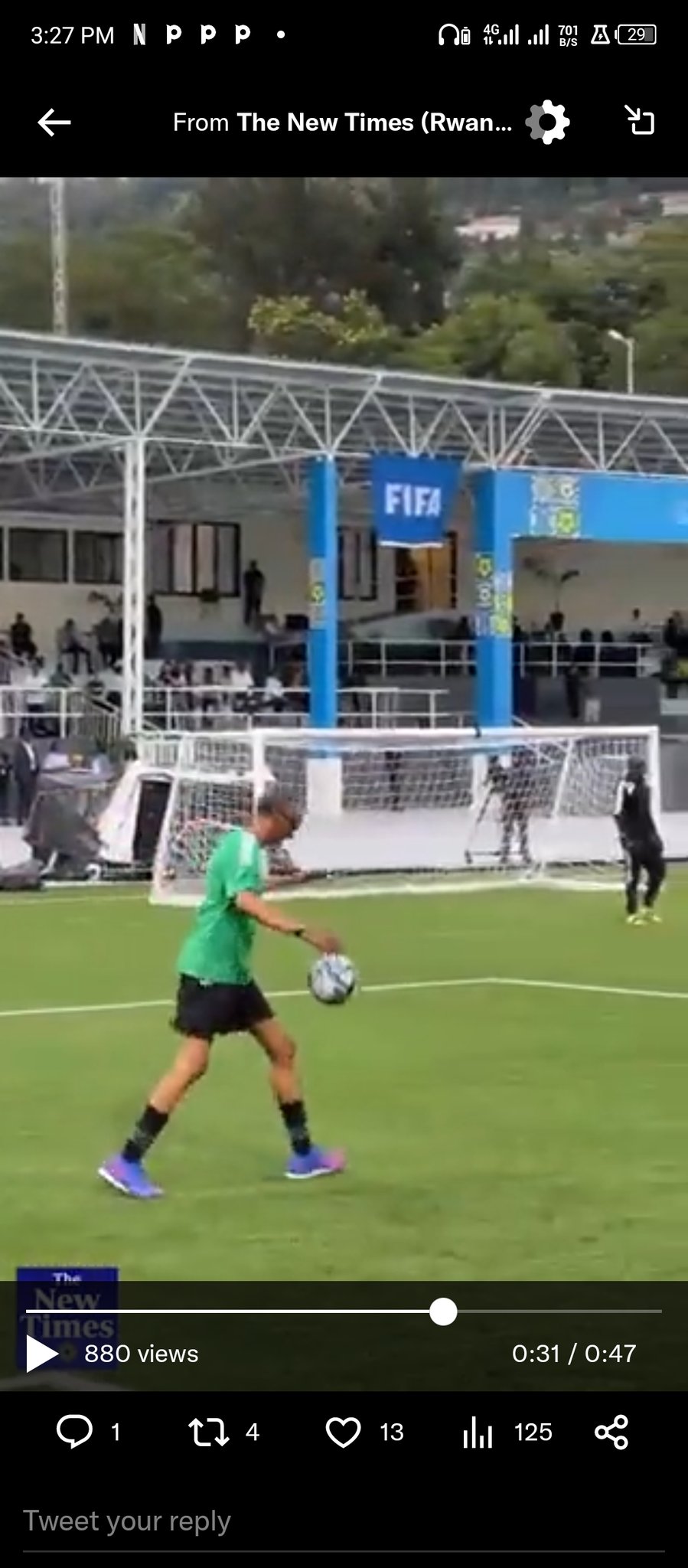 Ati: "Uyu munsi twazanye Isi yose mu Rwanda kubera umupira w’amaguru ari ikintu gihuza Isi; twishimiye kandi gufungura iyi Kigali Pelé Stadium. Pelé ni umupira w’amaguru kandi ni ngombwa ko tumuha icyubahiro nubwo yadusize."