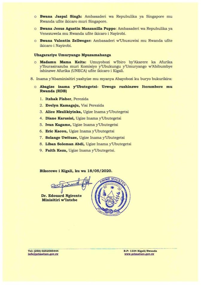 Dore imyanzuro yafashe ubwo habaga inama y’abaminisitiri yateranye kuwa 18 Gicurasi 2020