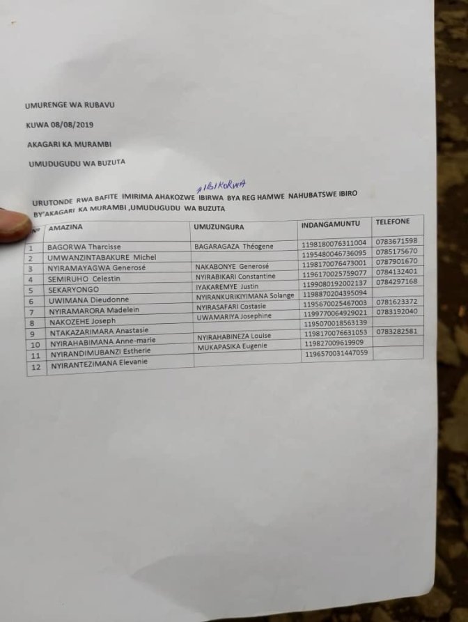 "Leta iza kuhakorera igikorwa cya leta, ihashyira ikibuga cy’umupira, ihubaka n’ibiro by’akagari nta ngurane twari dufite, ntazo bigeze baduha; nyuma yaho haza kuza igikorwa kijyanye n’iby’amashanyarizi, n’ibyo by’amashanyarazi nabyo nta ngurane".