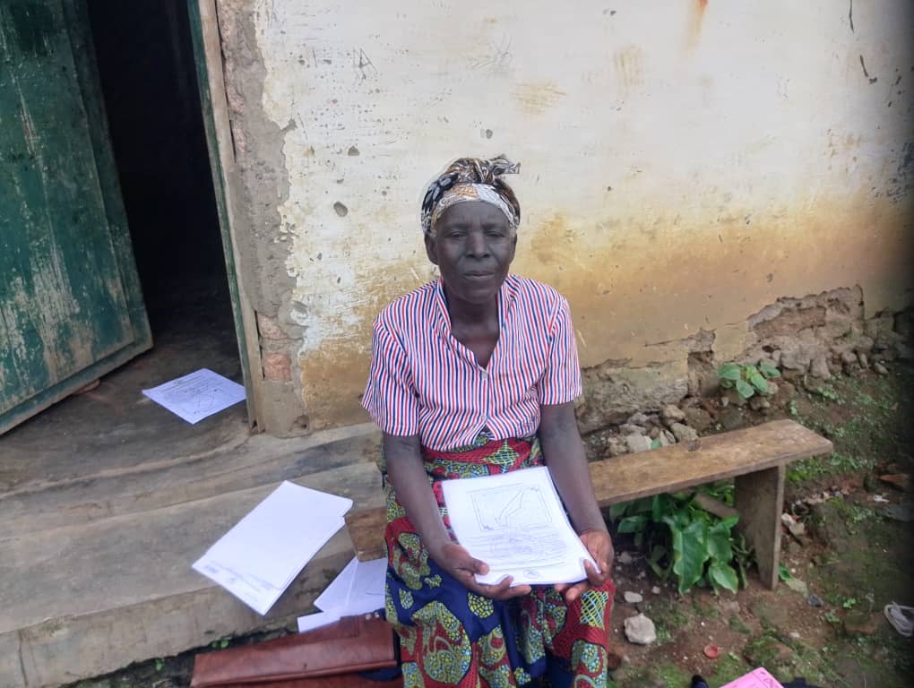 Nzabarantuma Esperance, umukecuru uri mu kigero cy’imyaka 75, hamwe n’umwuzukuru we ubwo twagera aha atuye, yeretse umunyamakuru wa MamaUrwagasabo TV imbapuro z’ibyangombwa by’ubutaka, zigaragaza ko ari ubwe ariko akaba atabukoresha.