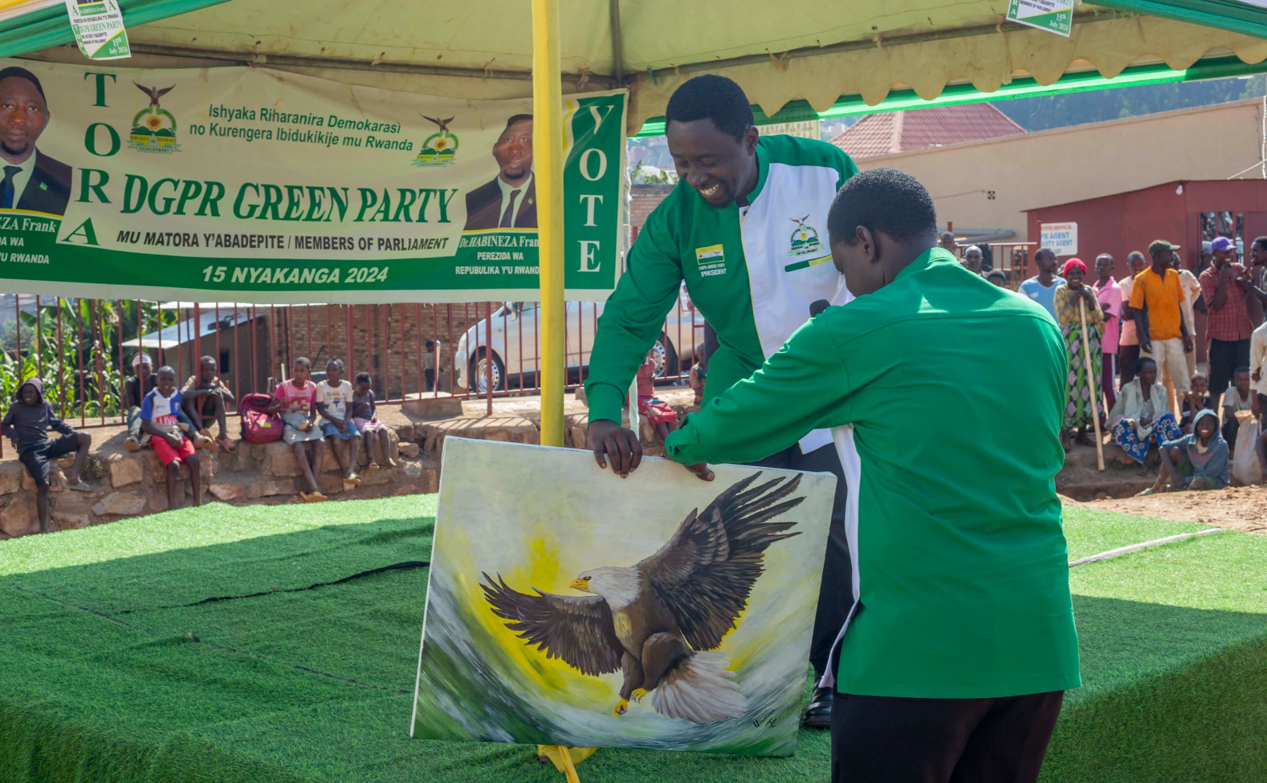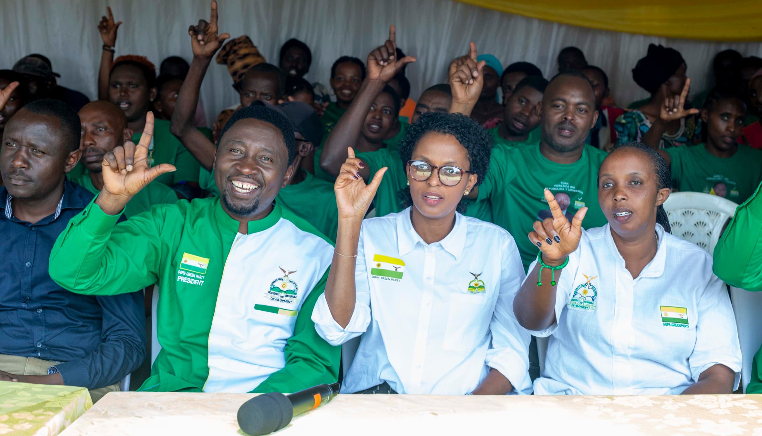 Umukandida Perezida Dr. Habineza yaje yitwaje igishushanyo cya Kagoma kizereka abaturage aho bazatera igikumwe kuri Green Party