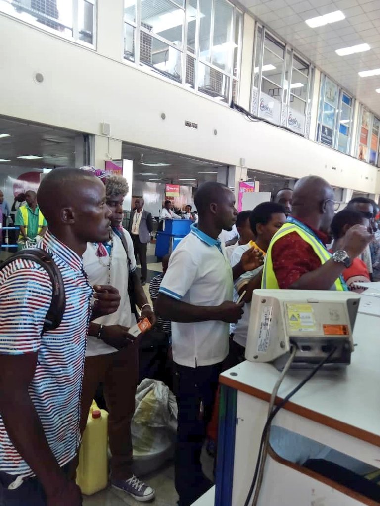 Biravugwa ko byibuze abahoze ari abarwanyi 57 n’abandi bantu 10 bo mu miryango yabo buririye indege ku Kibu8ga cy’Indege Mpuzamahanga cya Entebbe kuri uyu wa Kabiri, itariki 26 Gashyantare ku isaha ya saa yine.