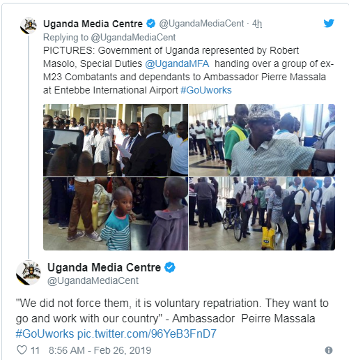 Ni mu gihe ambasaderi wa Congo we yemeza ko abo barwanyi basubiye iwabo ku bushake bwabo nk’uko iyi nkuru dukesha Daily Monitor ikomeza ivuga. bikaba bivugwa ko byibuze abandi bahoze ari abarwanyi ba M23 bagera kuri 200 bakiri mu nkambi ya Bihanga mu Karere ka Ibanda mu burengerazuba bwa Uganda.