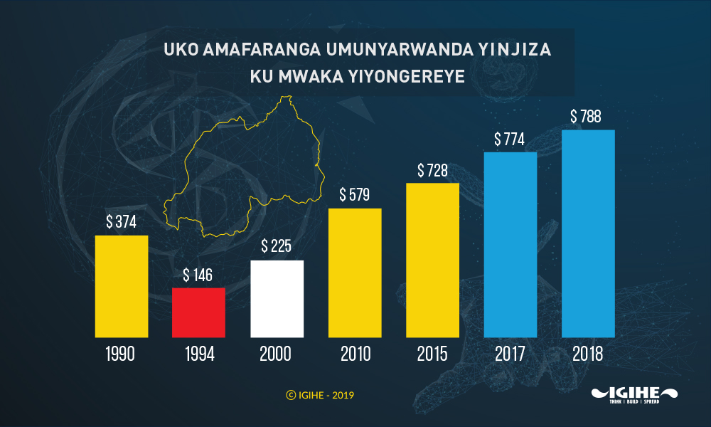 Kuba ikigereranyo cyerekana ko umunyarwanda yinjiza amadolari arenga abiri ku munsi, bikomoka kuri gahunda Leta ikunda gushyiraho zizamura ubukungu bw’igihugu, ndetse n’ubw’abaturage.