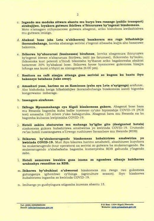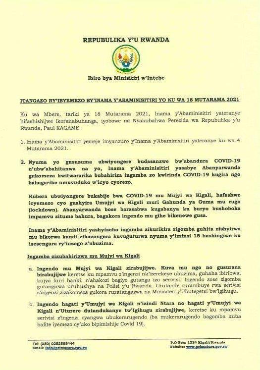 Umujyi wa Kigali washyizwe muri Guma mu Rugo nyuma.y’isesengura ry’Inama y’Abaminisitiri yateranye kuri uyu wa mbere tariki ya 18 Mutarama 2021 i Kigali iyobowe na Perezida Paul Kagame.