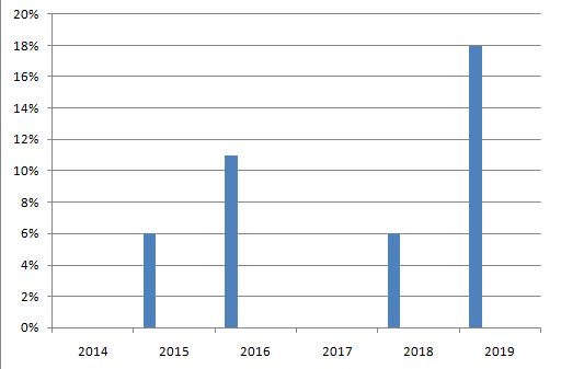 Ikigishushanyo cyerekana uko umusaruro mbumbe w’igihebwe cy’ambere kuva 2014 kugera 2019