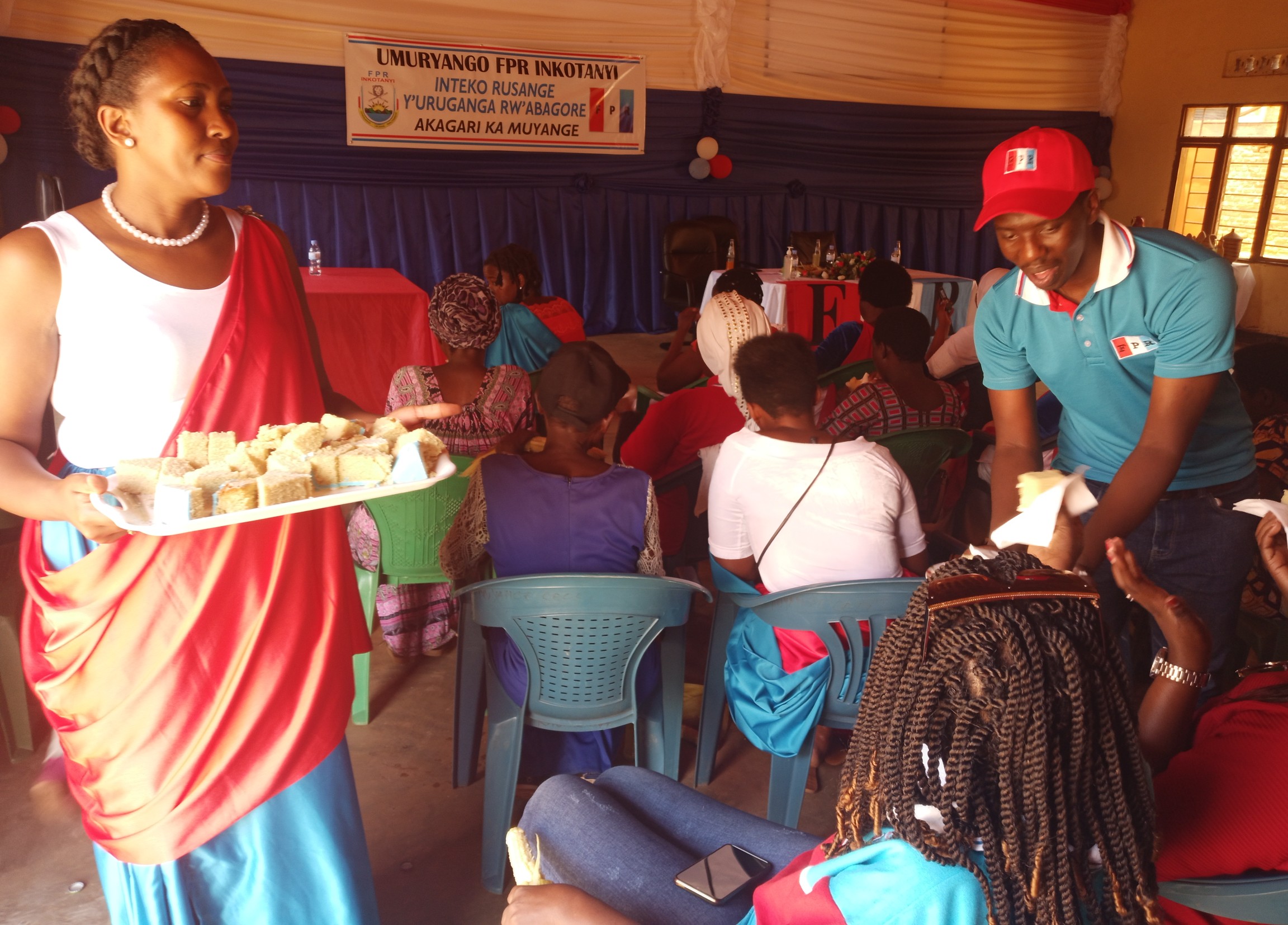 Chairperson w’Urugaga rw’Abagore bagize Umuryango FPR Inkotanyi mu Kagari ka Muyange, Nirere Marion hamwe n’umwungirije bakase umutsima wo gusangira n’abanyamuryango