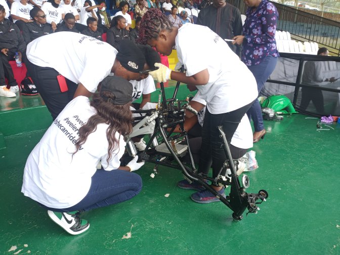 Ni abakobwa n’abagore bafashijwe kwiga moto no kuziteranya, kuzikanika muri gahunda y’umushinga Women Initiative Entrepreneurship.