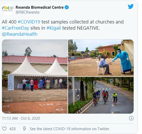RBC yatangaje ko muri ibyo bipimo byose byafashwe, nta n’umwe wasanzwemo Coronavirus. Bitangajwe nyuma y’uko kuri uyu wa Mbere mu bipimo 1988 byafashwe, habonetse umuntu umwe wanduye Coronavirus, ibintu byaherukaga kuba mu mezi asaga ane ashize.
