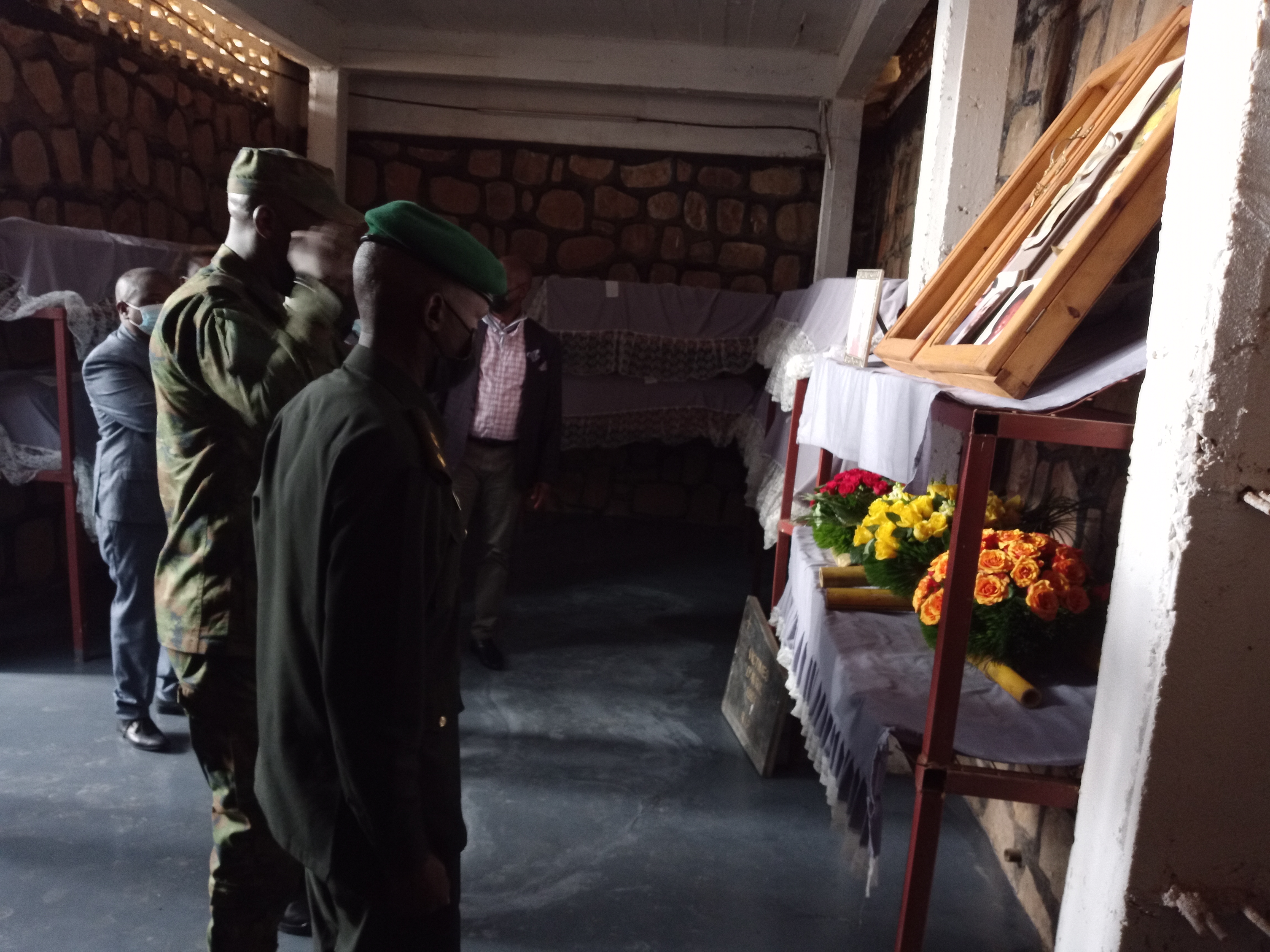 Ati “Iyo murebye inyuma yanyu aho (mu Rwibutso) muraza kubonamo imbago, insimburangingo n’imyunganirangingo z’abari bafite ubumuga; hano abantu bose b’intege nke baje hano ku Kiliziya kandi bahaburira ubuzima bose usibye abagabo babiri barokotse.”