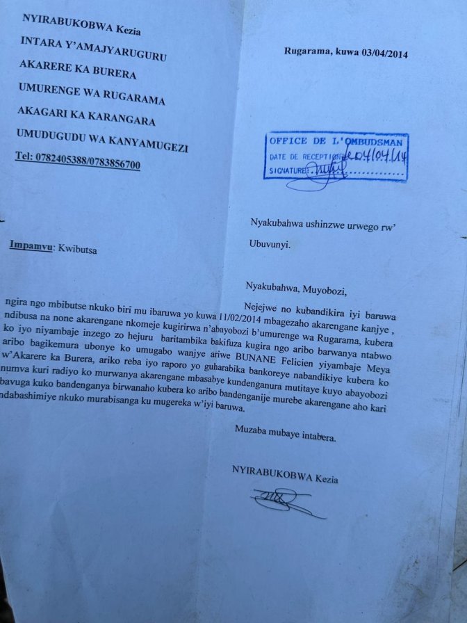 Uyu muturage arasaba kurenganurwa ngo kuko yagiye kuri Perezidanse bahamagara Meya wariho icyo gihe ngo akemure iki cyibazo ariko ngo ntabwo yigeze agikemura ndetse yiyambaje n’Urwego rw’umuvunyi ubuyobozi bw’Akarere bwanga gufasha uyu mukecuru.
