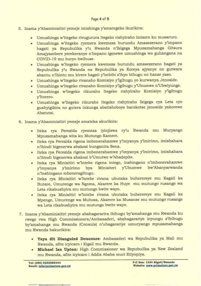 Inama y’Abaminisitiri yateranye kuri uyu wa kabiri mu ngingo ya gatanu yemeje imishinga y’amategeko atandukanye avanaho ibigo bya leta birimo Komisiyo y’Igihugu yo kurwanya Jenoside CNLG, ikigega FARG, Komisiyo y’Igihugu y’Ubumwe n’Ubwiyunge, komisiyo y’Igihugu y’Itorero.