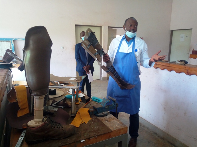 Aha umukozi umwe mu bakora insimburangingo n’inyunganirangingo yerekaga abashyitsi uko bakora bimwe mu bikoresho by’abafite ubumuga butandukanye, birimo n’ibigenewe abana bato
