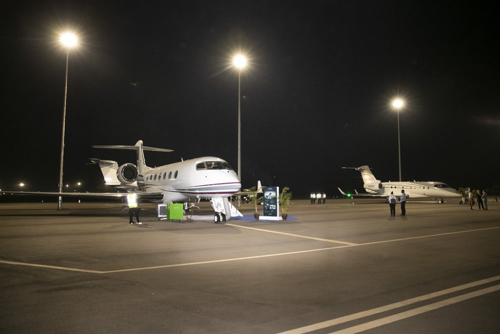 Iyi ndege ni imwe mu zakozwe n’uru ruganda ziri kumurikirwa mu Rwanda mu gihe hari kuba Inama yiswe Aviation Africa ihurije hamwe abasaga 400 bo mu bihugu 71 birimo 35 bya Afurika.