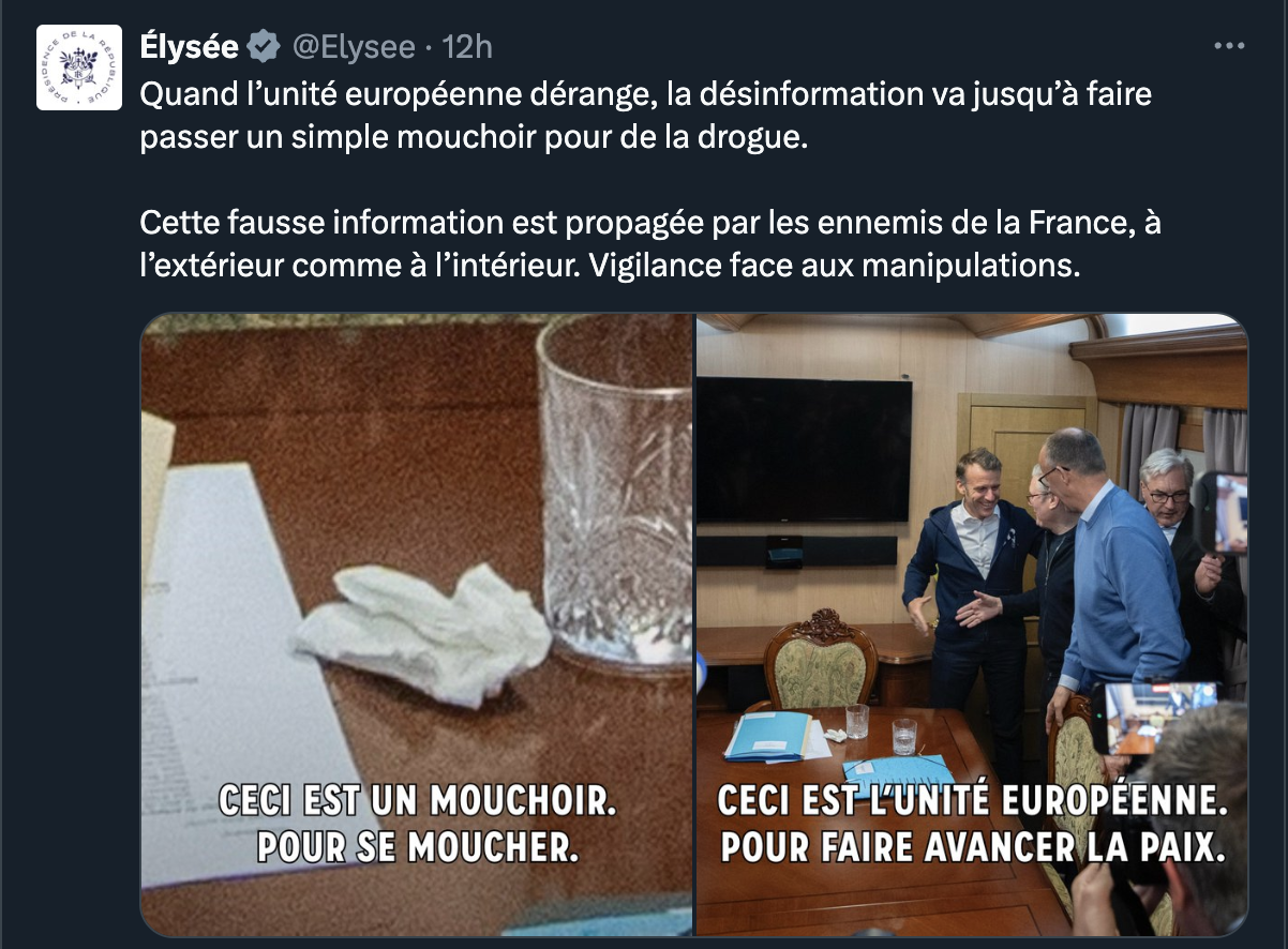Amashusho yakwirakwijwe ku mbuga nkoranyambaga yashimangiraga ko Perezida Macron, Friedrich Merz w’ubudage ndetse na minisitiri w’intebe wa Pologne Donald Tusk barimo basangira cocaine.