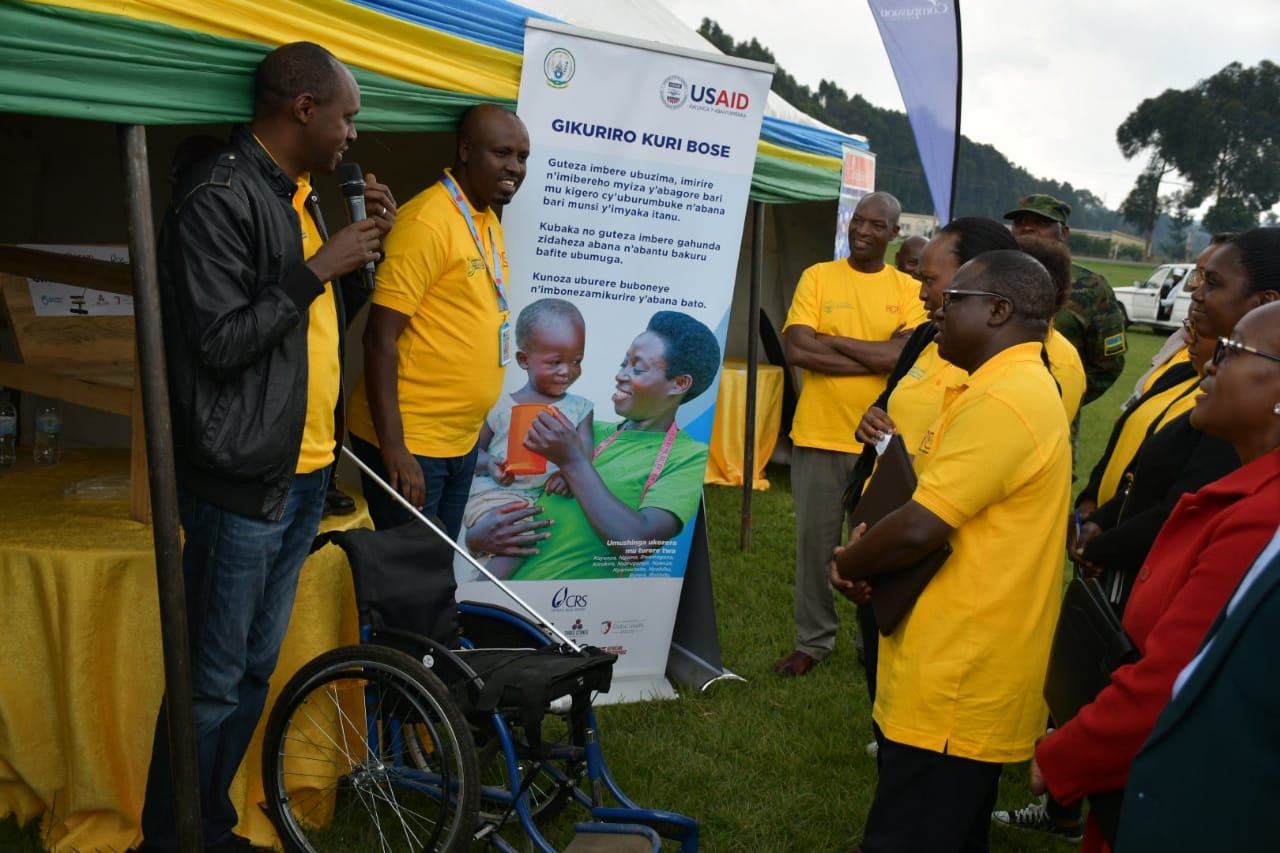 Ati: "Ndagira ngo ngire icyo nisabira mwebwe muri hano, ndibutsa ababyeyi ko ibi bigo mbonezamikurire atari kwa muganga, atari ahantu abana baza baje gukira ibi bibazo, icyo nshaka kuvuga ni uko izi serivisi zikwiye guhera mu rugo iwanyu, kandi ibi babyeyi bakwiye kubyumva, aho nsaba uruhare rw’amadini muri iki gikorwa; mudufashe mu bukangurambaga."