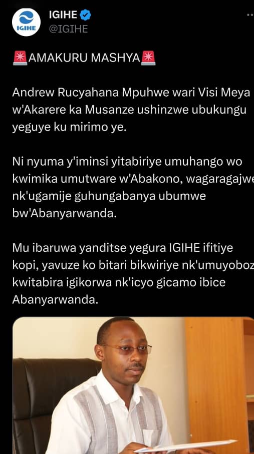 Nyuma yo kwitabira ibirori by’Umuhango wo kwimika Umutware w’Abakono, Rucyahana Mpuhwe Andrew wari Umuyobozi w’Akarere ka Musanze wungirije ushinzwe iterambere ry’Ubukungu abimburiye abayobozi banenzwe kwitabira uwo muhango kwegura.