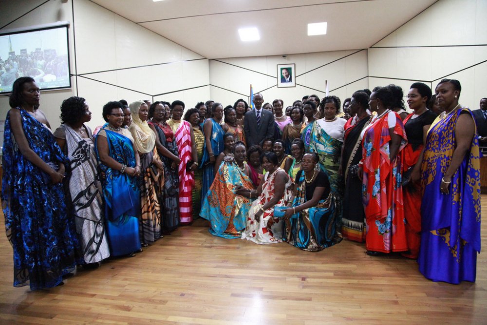Ubwo Perezida Kagame yafataga ifoto y’urwibutso hamwe n’abadepite b’abagore ubwo bari bamaze kurahira mu 2013.