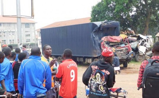 Iyo mpanuka yatewe n’uko imodoka ya Trinity yagonganye n’ikamyo ifite Purake y’i Burundi, yerekezaga i Kampala mu rucyererera rwo kuri uyu wa Gatandatu.