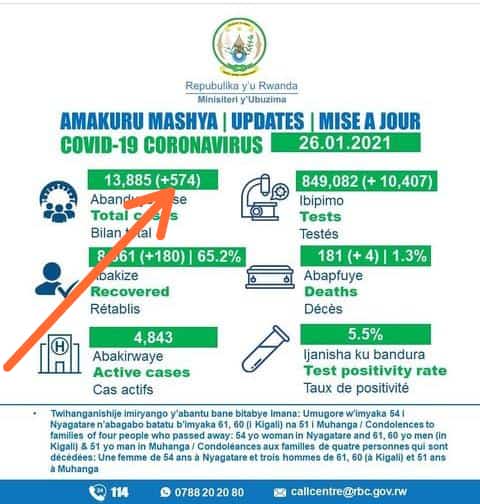Ubutumwa bukomeje gucicikana ku mbuga nkoranyambaga zitandukanye burerekana Abanyarwanda bari mu migi itandukanye, haba i Kigali, Rubavu n’ahandi, bari kuva mu ngo bakirara mu mihanda babyina intsinzi Amavubi ahesheje u Rwanda nyamara ku rundi ruhande usibye na gahunda ya Guma mu Rugo iri mu Mujyi wa Kigali na Guma mu Ntara, kuri uyu wa kabiri nibwo Minisiteri y’Ubuzima yagaragaje ko bwa mbere mu Rwanda habonetse umubare munini w’abanduye covid-19 bagera kuri 574 hapfa n’abandi bane.