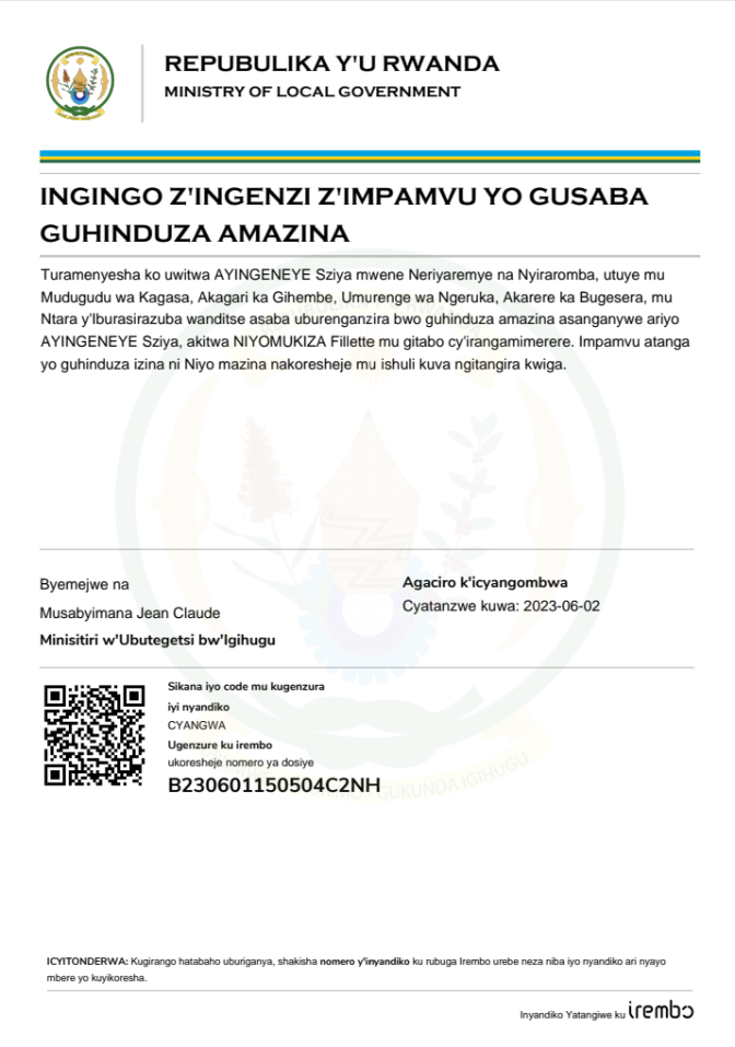 24 September 2024Itangazo ryo guhinduza amazina