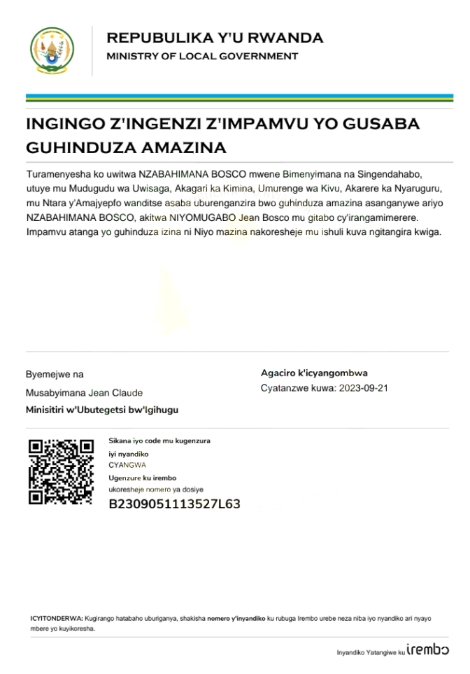 Itangazo ryo guhinduza amazina