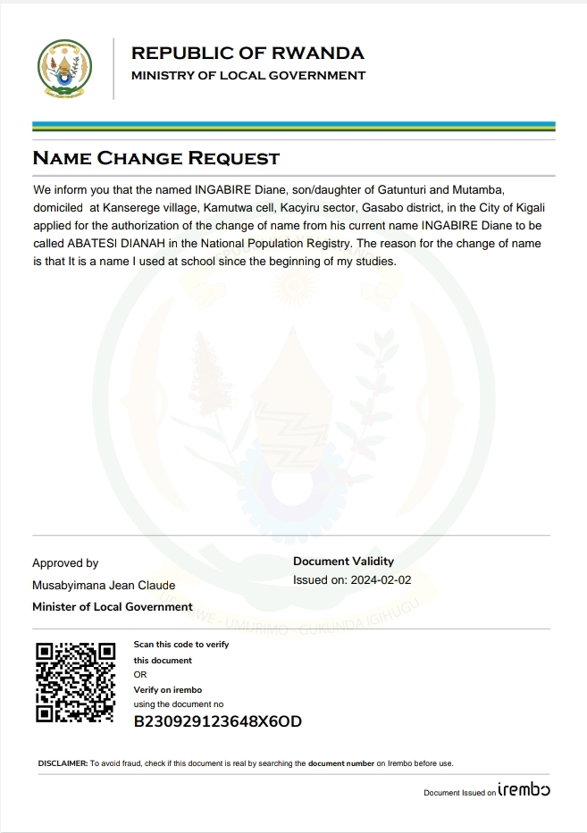 Itangazo ryo guhinduza amazina