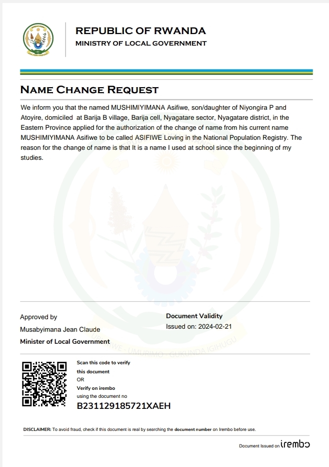 Itangazo ryo guhinduza amazina