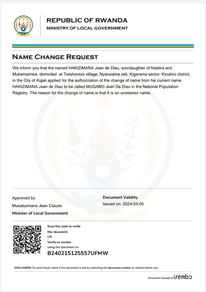 18 September 2024Itangazo ryo guhinduza amazina