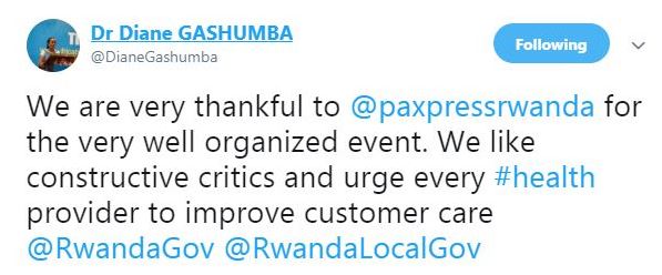 Abinyujije kurukuta rwe rwa Twitter Minisitiri Dr.Gashumba yashimye Pax Prees