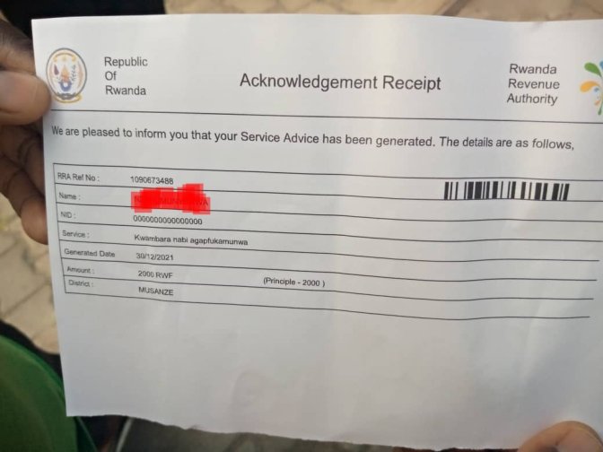 Munezero Kalisa ni amazina twamuhaye ku bw’umutekano we, avuga ko yatanze ibihumbi bitatu (3000) kubera ko yari yambaye agapfukamunwa nabi ariko atungurwa no kubona kunyemezabwishyu(receipt) handitseho ibihumbi bibiri (2000rwf) .