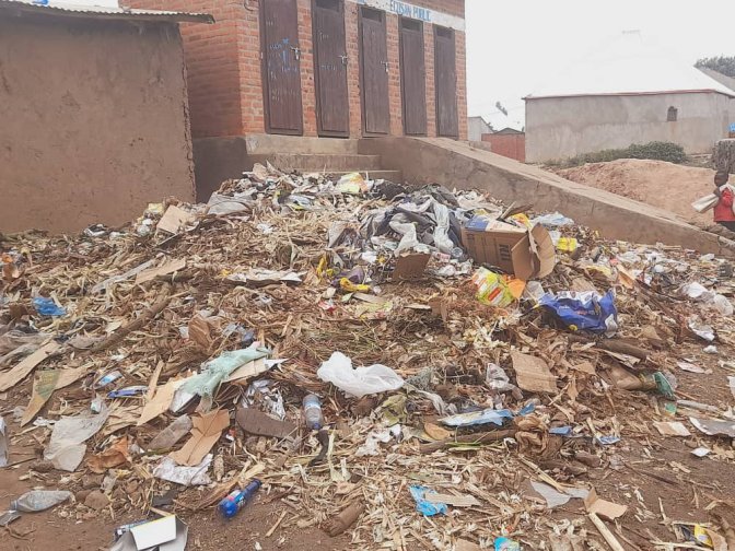 Iyo ugeze iruhande rw’ubu bwiherero bufatanye n’ikimoteri cy’isoko, usanga imyanda inyanyagiye hirya no hino, amaziranoki aba yuzuye hirya no hino, mu gihe Gitifu w’umurenge yavuze ko hari rwiyemezamirimo wagiranye amasezerano n’isoko.