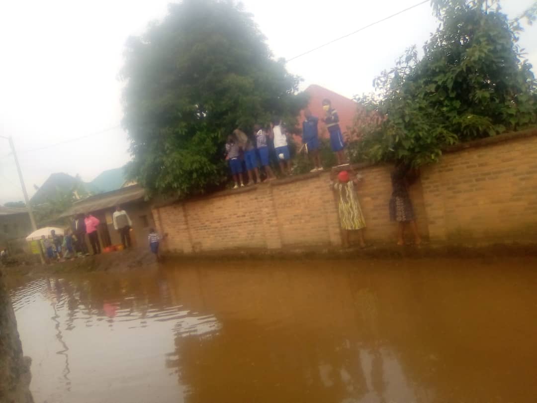 Ijisho ry’umunyamakuru ryasanze umuhanda uri hagati y’ingo zituye neza warabaye nk’ikiyaga cy’amazi, aho nta hantu n’umwana muto yabona aca kubera amazi yuzuye umuhanda agera mu ngo z’abaturage, zimwe amazi yabasanze mu nzu.